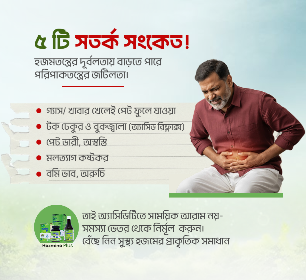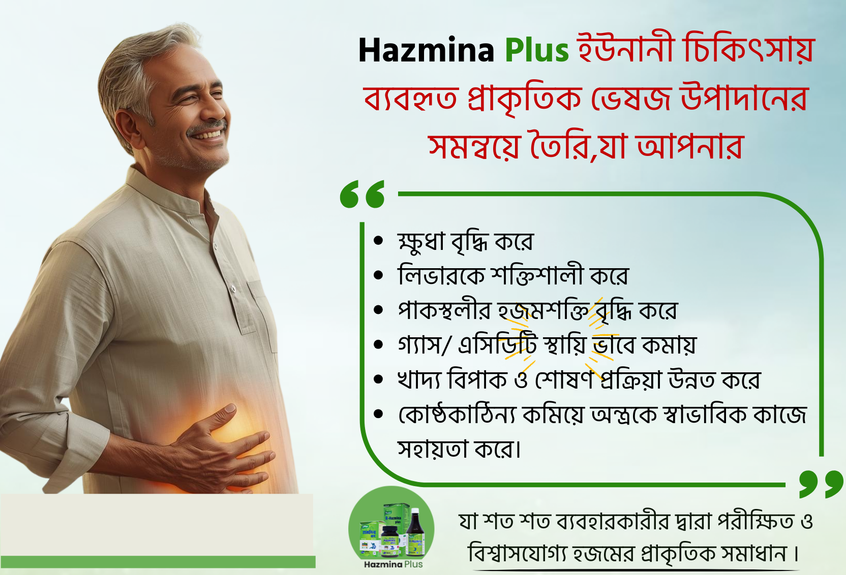 এই সমস্যাগুলো দীর্ঘমেয়াদে আপনার লিভার ও পরিপাকতন্ত্রের ক্ষতি করতে পারে। তাই কোন ক্ষনস্থায়ী রিলিফ এর দিকে না ঝুকে বেঁছে নিন সুস্থ্য হজমের স্থায়ী সমাধান-Hazmina Plus